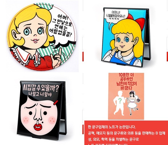 학생들이 장난삼아 친구들끼리 한 말이 아니다. 노트와 거울, 수첩 등 문구류를 판매하는 전문업체 ‘반8’이 상품에 넣은 스티커터나 그림에 적힌 글이다.