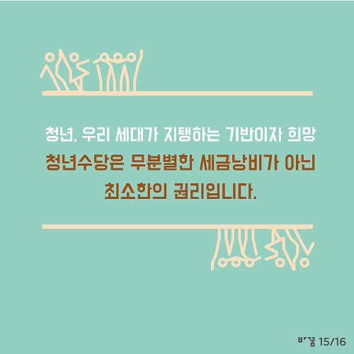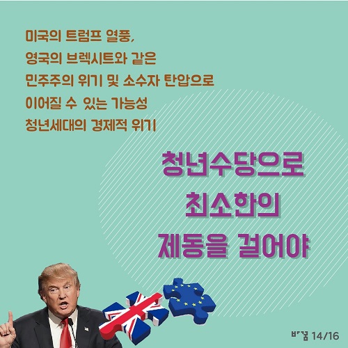 * ‘바꿈, 세상을 바꾸는 꿈’ (http://change2020.org/)에서 ‘청년수당’의 필요성에 관한 내용을 담은 카드뉴스를 ‘go발뉴스’에 보내왔습니다.