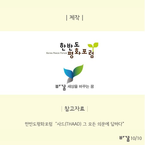 * ‘바꿈, 세상을 바꾸는 꿈’ (http://change2020.org/)과 ‘한반도평화포럼’에서 사드 한반도 배치와 관련한 문제점을 담은 카드뉴스를 ‘go발뉴스’에 보내왔습니다.