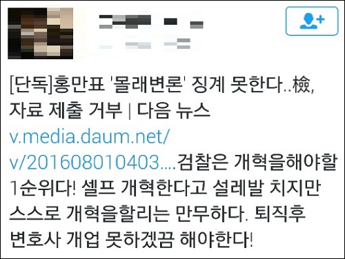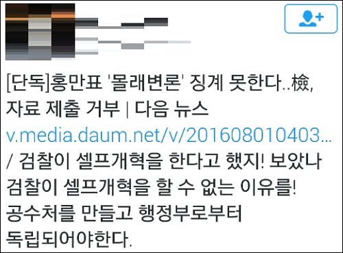 이밖에도 “공수처가 반드시 필요한 이유다”, “우리나라는 검찰과 법원을 개혁하지 않고는 영원한 개돼지의 나라에서 벗어날 수 없다”, “국정조사와 특검으로 밝혀주세요”, “이래놓고 검찰개혁?”, “대한민국에서 젤 시급한 것은 검찰 해체 수준의 대개혁이다”, “방법은 하나, 공수처 신설! 검찰개혁. 야당은 1순위로 처리하라”, “역시 가재는 게편”, “박근혜 대통령님, 이런 사람 처벌 안하시나요?” 등 비판이 잇따랐다.