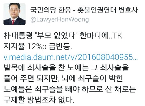한웅 변호사는 “발목에 쇠사슬을 찬 노예는 그 쇠사슬을 풀어 주면 되지만, 뇌에 쇠구슬이 박힌 노예들은 쇠구슬을 빼야 하므로 산 채로는 구제할 방법조차 없다”고 꼬집었다.