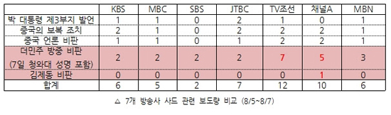 ■ 민언련 오늘의 나쁜 방송 보도(8/5~8/7)