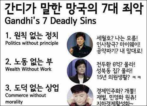 “간디가 경고한 ‘나라를 망치는 7가지 죄악’에 꼭 들어맞는 박근혜정권”