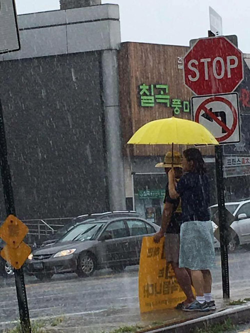 우산, 함께 비를 맞고자 하는 작은 움직임입니다.