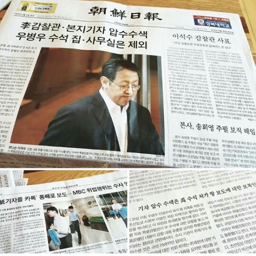 <조선>은 또, “수사 기관이 취재 기자 휴대폰을 압수한 것은 극히 이례적인 일”이라며 이는 우병우 수석 처가 땅 보도에 대한 보복 차원 아니냐는 의혹을 제기하기도 했다.
