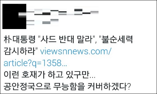 온라인상에서도 무능한 정부의 대북정책을 공안정국으로 무마하려는 것 아니냐는 지적과 함께, 국가안보 책임자들이 모두 자리를 비우고도 ‘불순세력’ 운운하는 박근혜 정부의 태도를 성토하는 목소리가 잇따랐다.