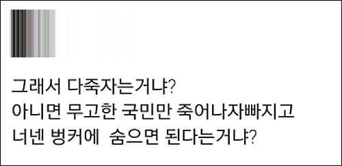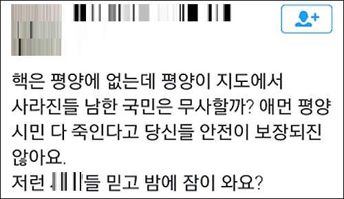 유창선 시사평론가는 “북한의 핵사용 징후에 대한 잘못된 판단의 위험은 없을까. 평양이 지도에서 없어질 상황이라면 서울은 지도에서 남아 있을까”라고 의문을 제기하며 “정부의 대책이라는 것이 고작 ‘너 죽고 나 죽자’는 것 이외에 아무 것도 없음에 절망하고 또 절망한다”라고 개탄했다.