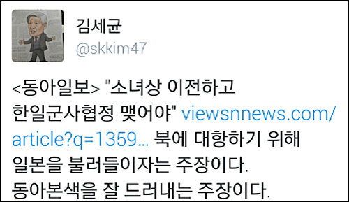 북한 5차 핵실험 사태와 관련 동아일보가 “소녀상을 이전하고 한일군사협정을 맺어 한일 군사협력을 강화해야 한다”고 주장하고 나서 비난이 일고 있다.