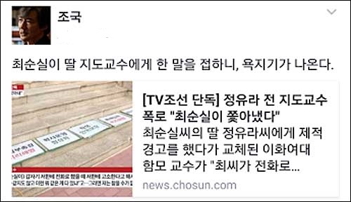 함 교수가 주장한 최순실씨의 행태에 대해 조국 서울대법학전문대학원 교수는 페이스북에서 “최순실이 딸 지도교수에게 한 말을 접하니, 욕지기가 나온다”고 비판했다.