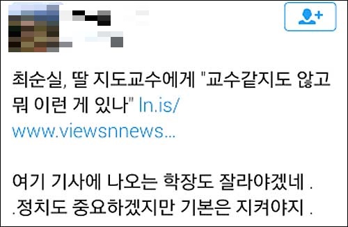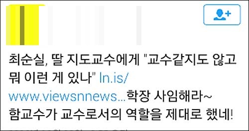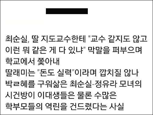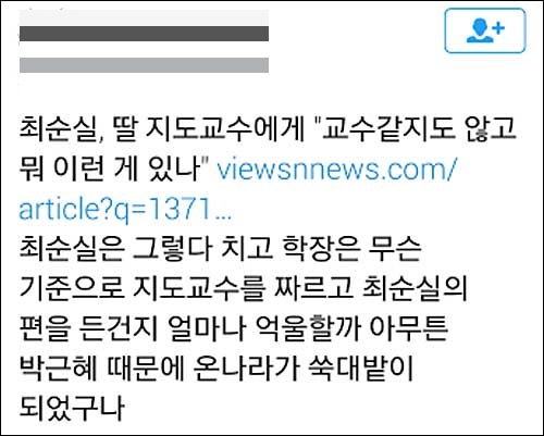 ☞ 관련기사 : 최순실 딸 “돈도 실력” SNS글…정몽준 아들‧전두환 손녀 발언 ‘재주목’