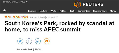 나라 안팎에서 박근혜 하야 요구에 대한 목소리가 더욱 거세어져 가는 가운데 로이터 통신은 8일, 박근혜 정권이 국정농단 사태로 인해 대혼란에 빠진 상태라고 보도했다.
