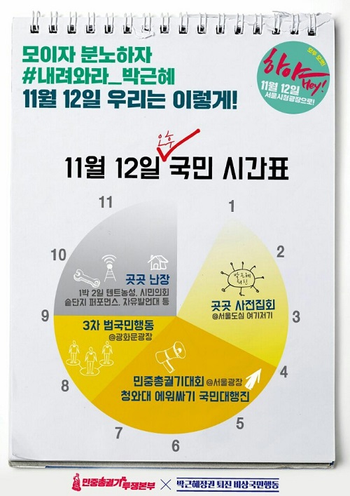 ‘동서남북 사방팔방 모두 함께 광장으로’…“내려와라 박근혜”