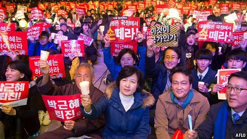 숫자는 현 상황을 여실히 나타낸다. 지난 2주간 박근혜 대통령은 한국 역사상 가장 인기 없는 대통령으로 기록됐다. 박 대통령의 지지율은 5%를 유지했고 젊은 층 사이에서는 0%를 기록했다. 11월 12일, 서울에서는 장시간 동안 무려 백만 명의 국민들이 박 대통령의 하야를 요구하는 대규모 시위를 벌였으며, 이는 군사정권에 대항하여 한국의 첫 대통령 직선제를 이끌어낸 1987년 대규모 시위 이래로 최대 규모의 시위였다. 박 대통령은 사태의 “심각성”은 인식하고 있으나 계속해서 “대통령으로서 임무를 다하겠다”고 말했다.