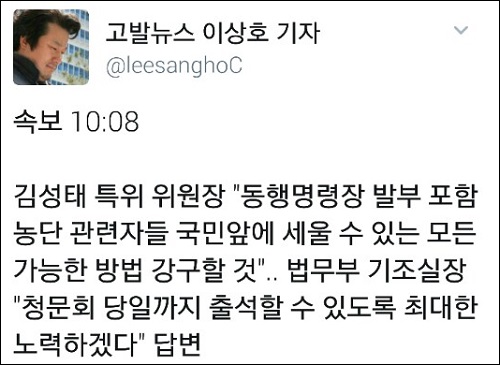 고발뉴스는 유튜브, 페이스북 라이브, 트위터 등을 통해 ‘최순실 국정농단 국정조사’ 1차 청문회를 생중계 중이다.