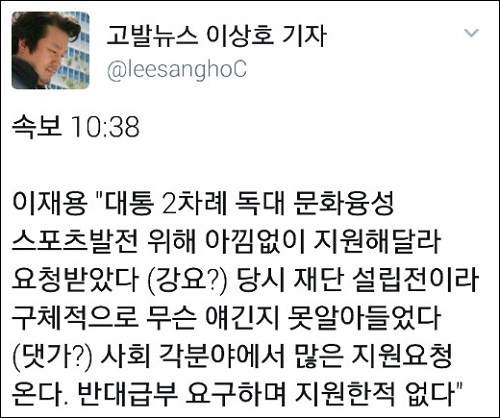 증인으로 채택된 재벌 총수는 삼성전자 이재용 부회장을 비롯해 국경제인연합회(전경련) 회장을 맡고 있는 허창수 GS 회장과 신동빈 롯데그룹 회장, 구본무 LG그룹 회장, 정몽구 현대차 회장, 최태원 SK회장, 손경식 CJ회장, 김승연 한화그룹 회장, 조양호 한진그룹 회장 등이다.