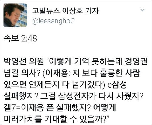 6일 국회에서 진행되고 있는 ‘최순실 국정농단’ 국정조사 1차 청문회에 삼성전자 이재용 부회장을 비롯해 대기업 총수 9명이 소환됐다.