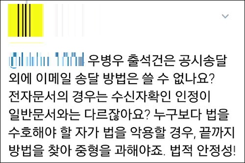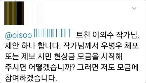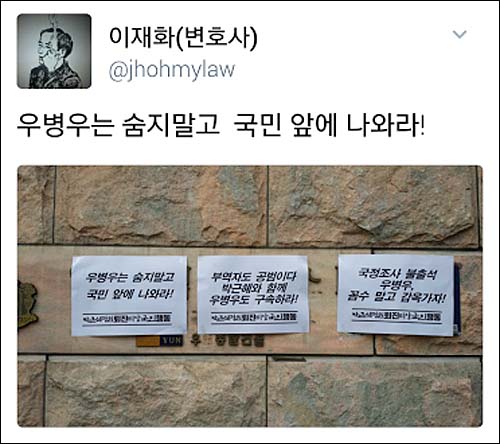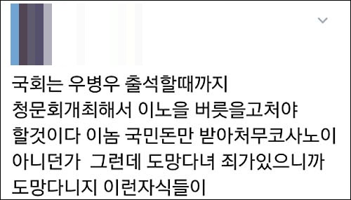 한편 SNS에서는 청문회 출석요구서를 받지 않는 편법으로 ‘가출투쟁’을 벌이고 있는 우병우 전 수석과 장모 김장자씨에 대한 색출 방안이 올라오고 있다.