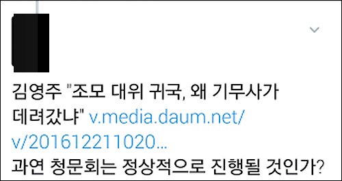 “정상적인 청문회는 가능할까?”, “갈수록 태산이네, 기무사도 없애라! 언제까지 조작할 거야”, “진짜 미친 나라야, 증인을 기무사가 왜 데려가냐?”, “입국하자마자 기무사에서 데려 갔다면 위증하라는 회유 협박이거나 거짓 증언에 대한 입 맞추기 연습 일 것 같다는 합리적 의심이 든다”, “국정 농단에 청문회 농단까지 촛불이 횃불된다” 등의 의견이 이어졌다.