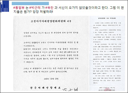 6. 박근혜 대통령이 북측과 편지를 수시로 주고받은 정황이 드러나 논란이 일고 있습니다. 하지만 통일부는 박 대통령이 김정일 북한 국방위원장에게 서신을 보냈다는 보도에 대해 해당 서신이 북한에 전달되지 않은 것으로 판단했습니다.