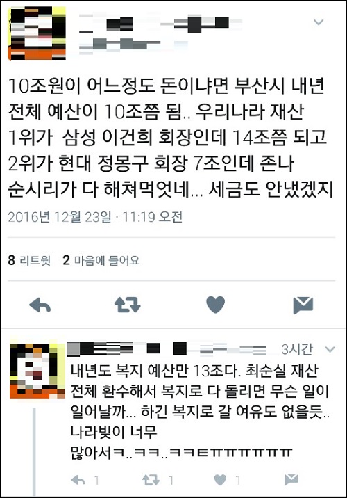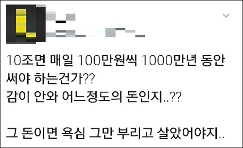 한편, 일부 네티즌들은 ‘최씨가 해외에 은닉한 10조원의 돈이 도대체 얼마나 큰 돈 인지 상상이 안 간다’면서 이를 나름 가늠해 보기도 했다.