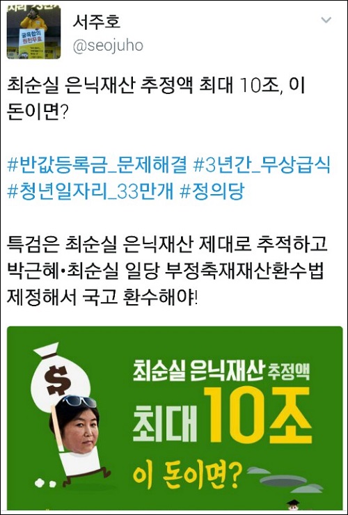 이 대변인은 “국민을 현혹할 만한 자극적인 소재만 쫓고 있을 때 최순실은 유유히 유럽을 돌며 재산을 은닉한 것”이라며 “그동안 최순실을 수사한 검찰은 도대체 무엇을 했던 것인가. 특검은 독일검찰과 적극 공조해 최순실의 은닉재산 일체를 밝혀내야 할 것”을 전했다.