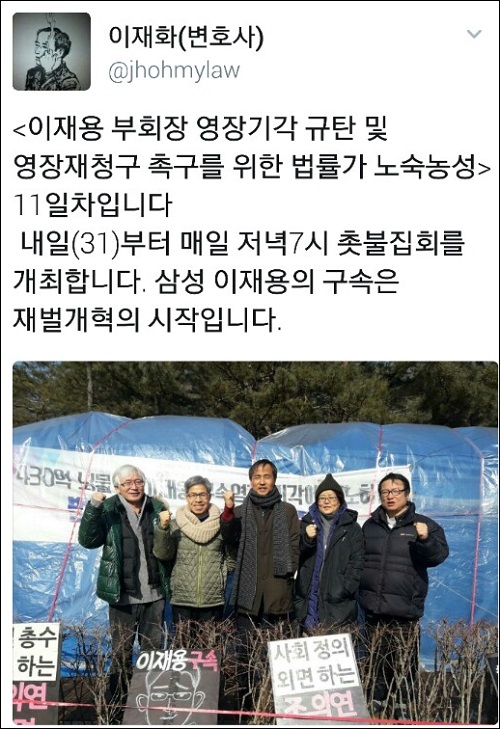 법률가들 노숙농성 11일째.. 이재화 “삼성 이재용 구속은 재벌개혁의 시작”