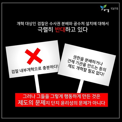 * ‘바꿈, 세상을 바꾸는 꿈’ (http://change2020.org/)에서 ‘검찰개혁’ 방안을 다룬 카드뉴스를 ‘go발뉴스’에 보내왔습니다.