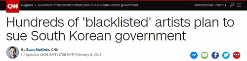 CNN은 8일, 블랙리스트에 오른 수백 명의 예술인들이 한국 정부를 대상으로 소송을 계획하고 있다고 보도했다.