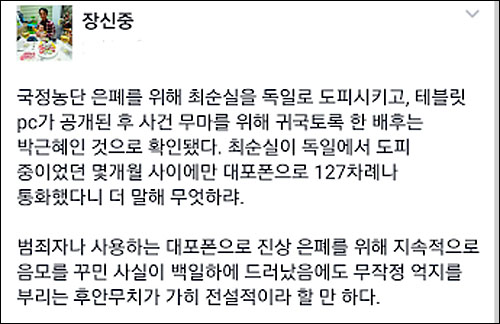 장신중 前 총경 “127회 대포폰, 태블릿PC 무마 위해 최순실 귀국 배후, 박근혜”