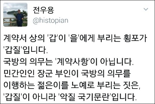 전우용 “국방의무 ‘계약사항’ 아냐…사령관 부부 갑질? 악질 국기문란!”