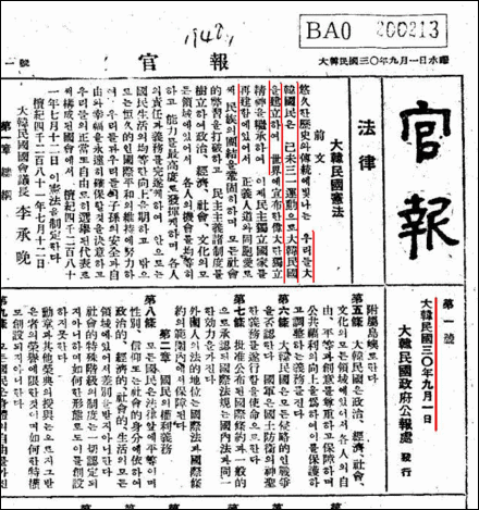 자한당에 묻고 싶다. 1919년 4월 11일 발표한 임시정부법령 제 1호 ‘대한민국헌장’에는 ‘대한민국원년 사월 대한민국임시정부’라고 했는데 그렇다면 현행헌법 전문에 나오는 ‘유구한 역사와 전통에 빛나는 우리대한민국은 3·1운동으로 건립된 대한민국임시정부의 법통과 불의에 항거한 4·19이념을 계승...’하는 헌법을 부정하겠다는 것인가? 또 ’1948년 건국‘은 헌법에 명시한 대한민국이 우리나라가 아니라 어느 나라라는 말인가?