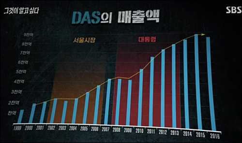 다스의 성장과 관련 반기홍 세무사는 “서울시장 취임 전, 퇴임후 매출액 증가율은 122%가량으로 거의 2배 이상 증가했다”며 “대통령 퇴임 이후, 그 직후에는 8230억원으로 또 100% 가량 증가했다”고 말했다.