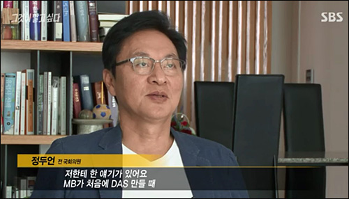 다스의 소유주 의혹과 관련 MB정권 개국공신으로 불렸던 정두언 전 의원은 “다스를 처음 만들 때 MB가 저한테 한 얘기가 있다”며 “MB는 왕회장(정주영)보다 정세영 회장과 더 친했는데 다스를 만들라고 권유했다고 하더라”고 밝혔다.