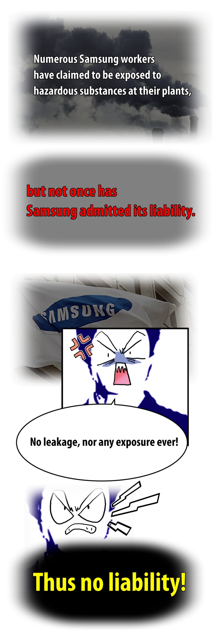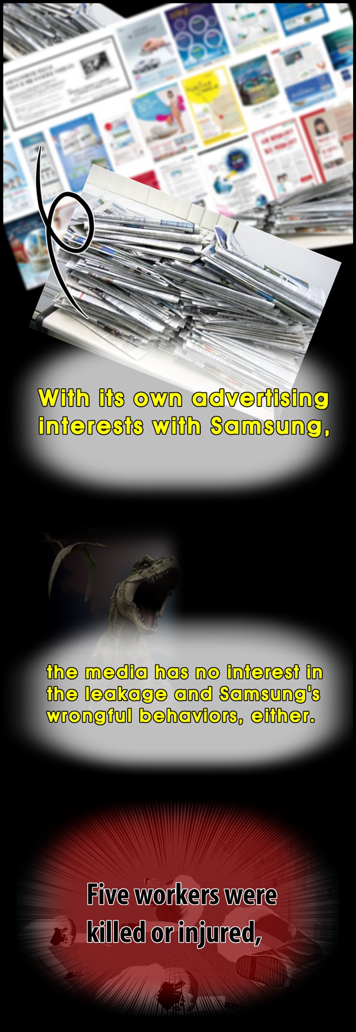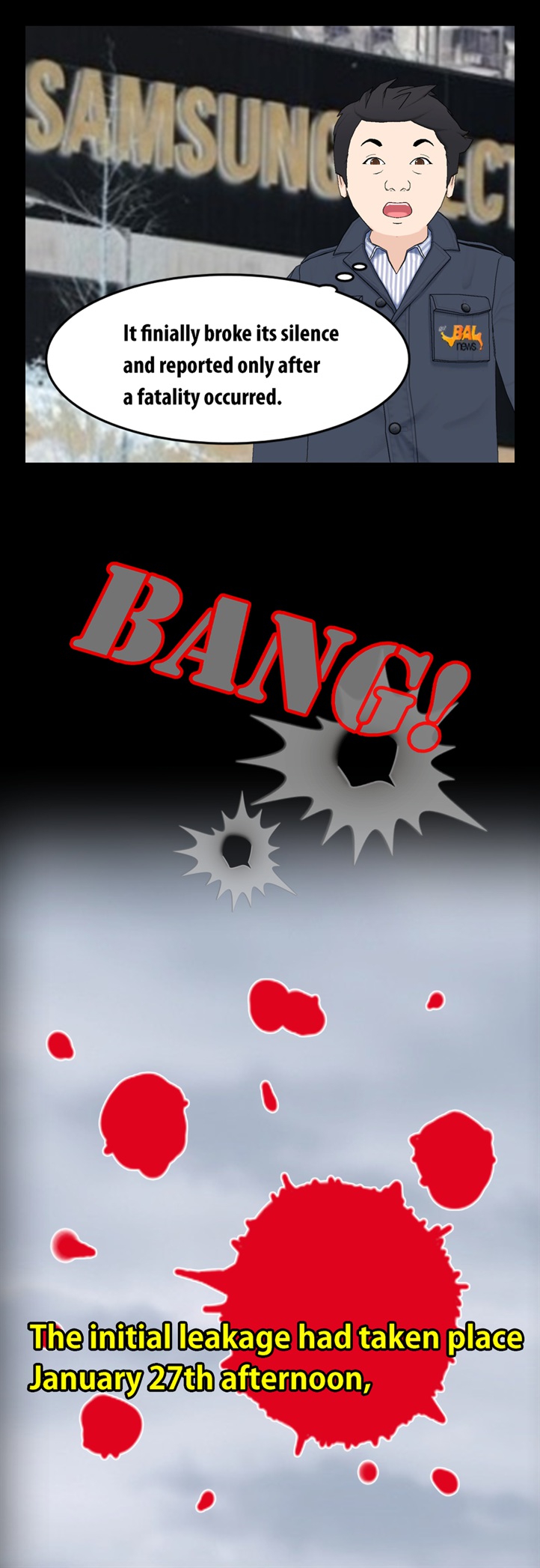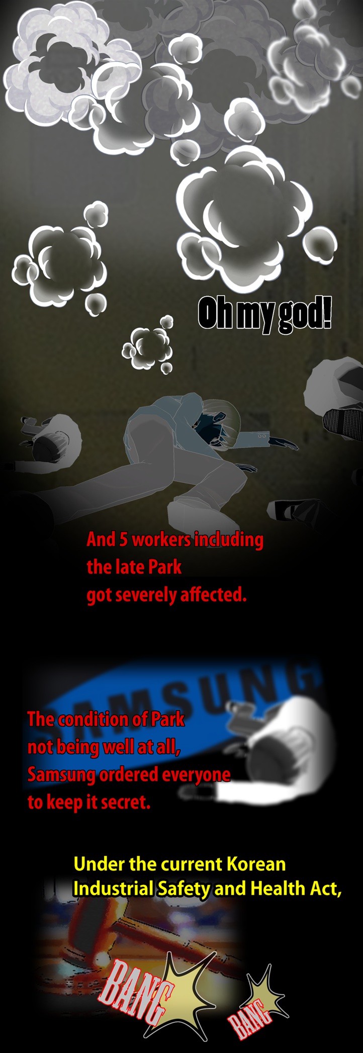 네티즌 사이에서 폭발적인 반응을 얻고 있는 'go발뉴스' 만화버전 '이기자 뉴스'의 '삼성묵시록'에는 최근 삼성반도체 화성 공장 불산 누출 사고와 관련한 삼성의 은폐 형태가 고스란히 담겨 있다.