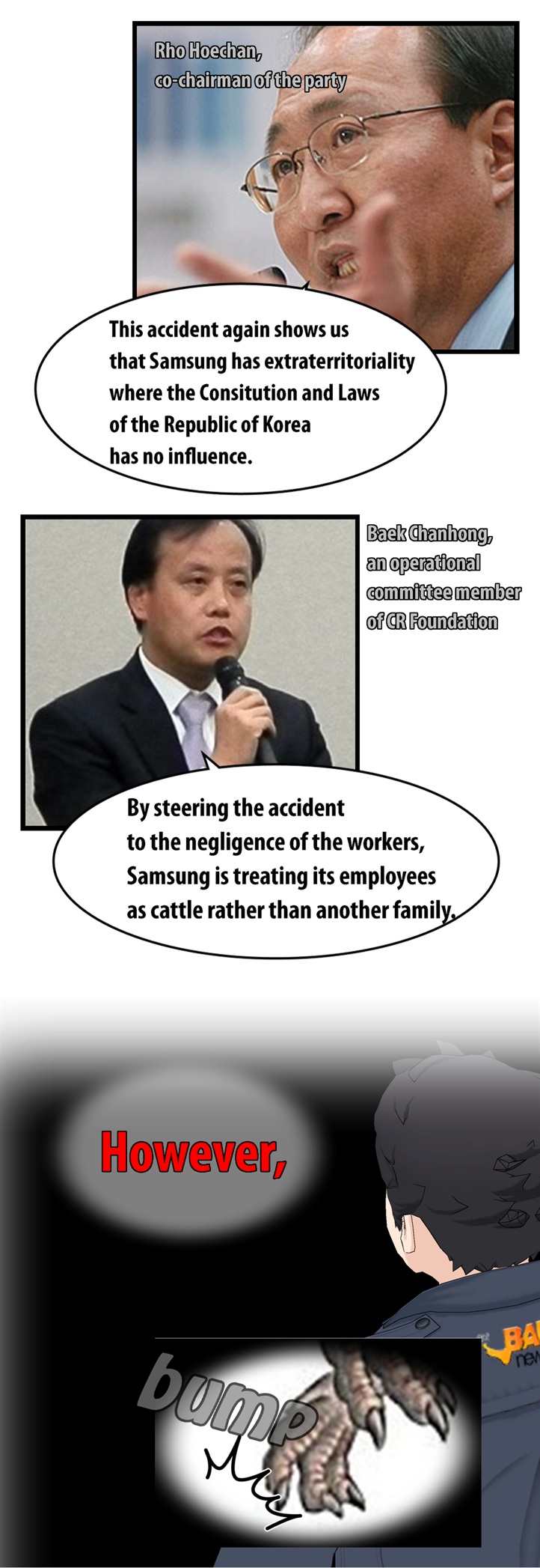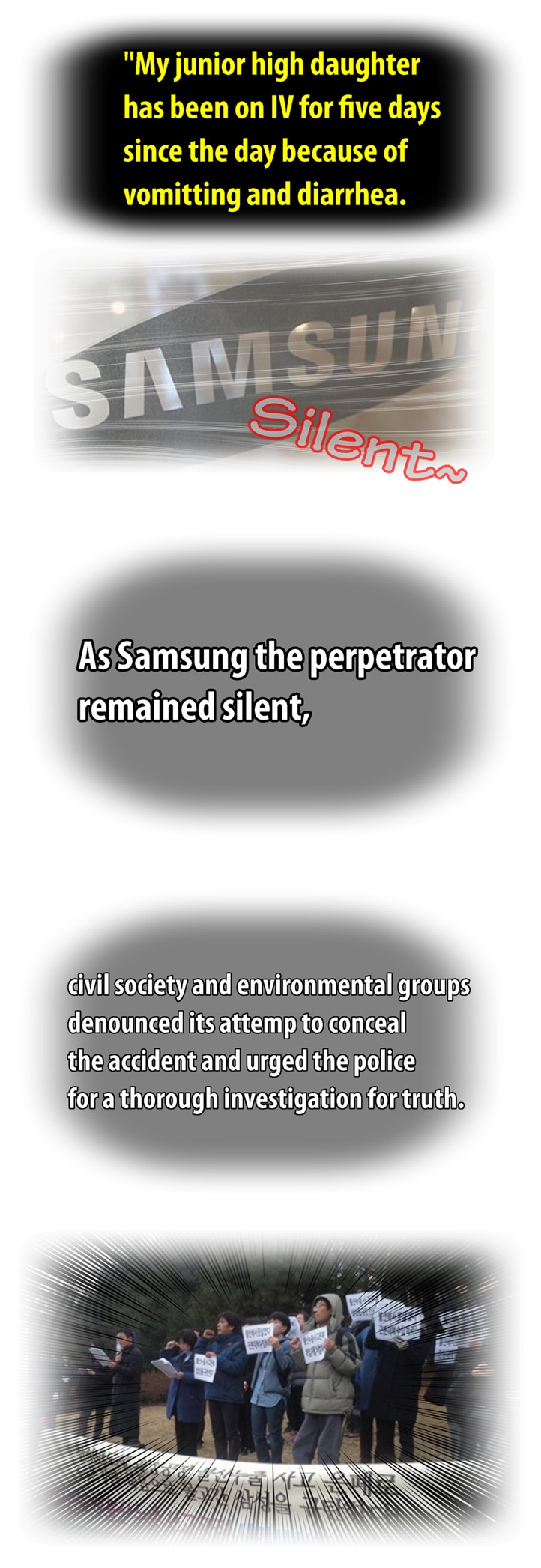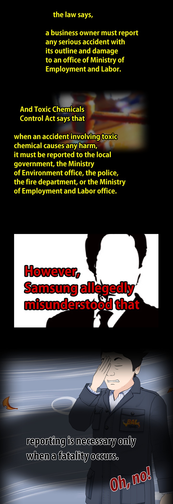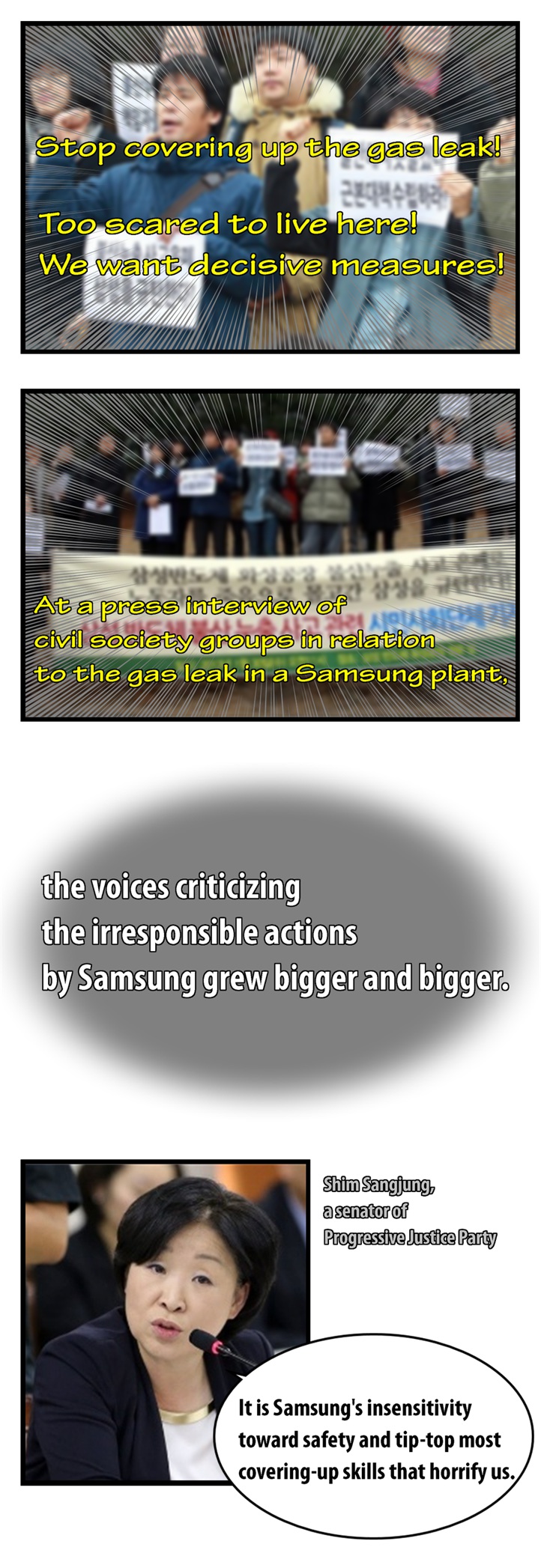 네티즌 사이에서 폭발적인 반응을 얻고 있는 'go발뉴스' 만화버전 '이기자 뉴스'의 '삼성묵시록'에는 최근 삼성반도체 화성 공장 불산 누출 사고와 관련한 삼성의 은폐 형태가 고스란히 담겨 있다.