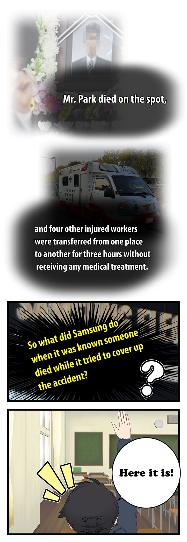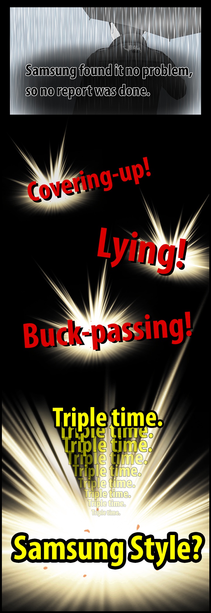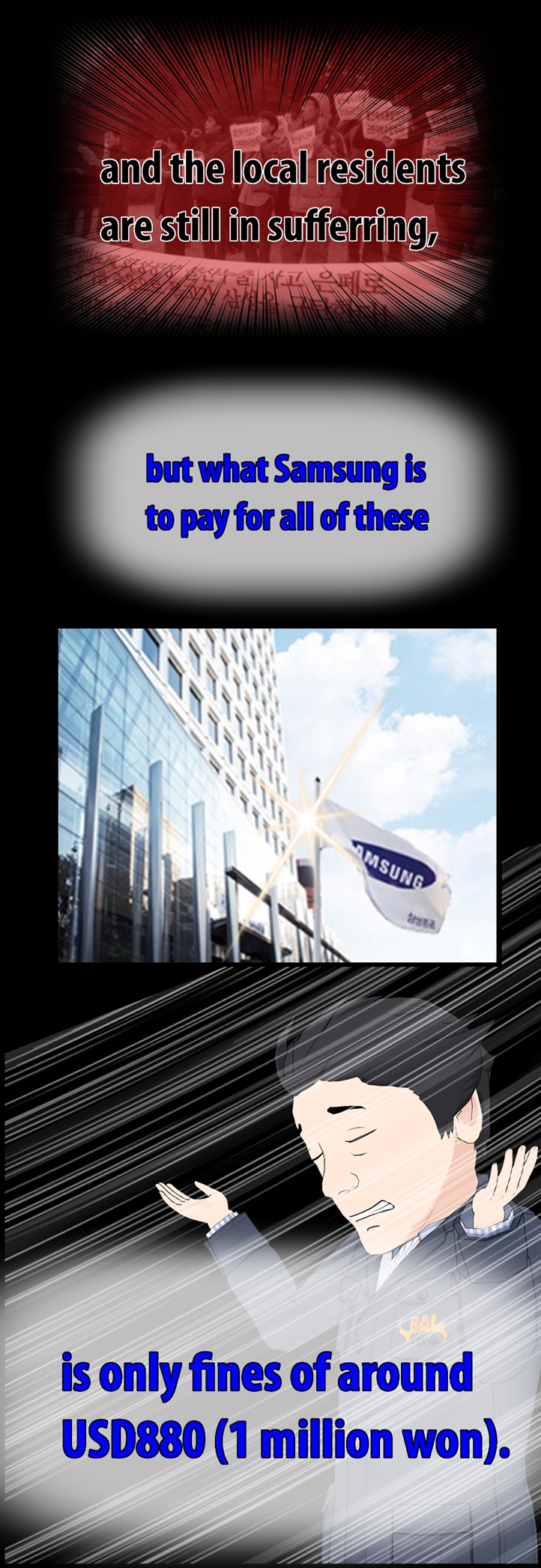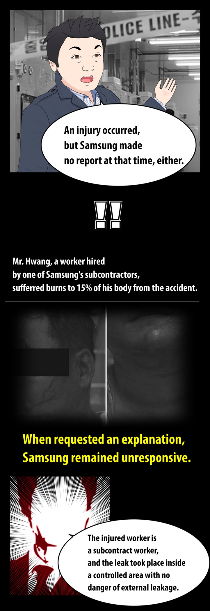 네티즌 사이에서 폭발적인 반응을 얻고 있는 'go발뉴스' 만화버전 '이기자 뉴스'의 '삼성묵시록'에는 최근 삼성반도체 화성 공장 불산 누출 사고와 관련한 삼성의 은폐 형태가 고스란히 담겨 있다.