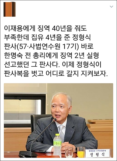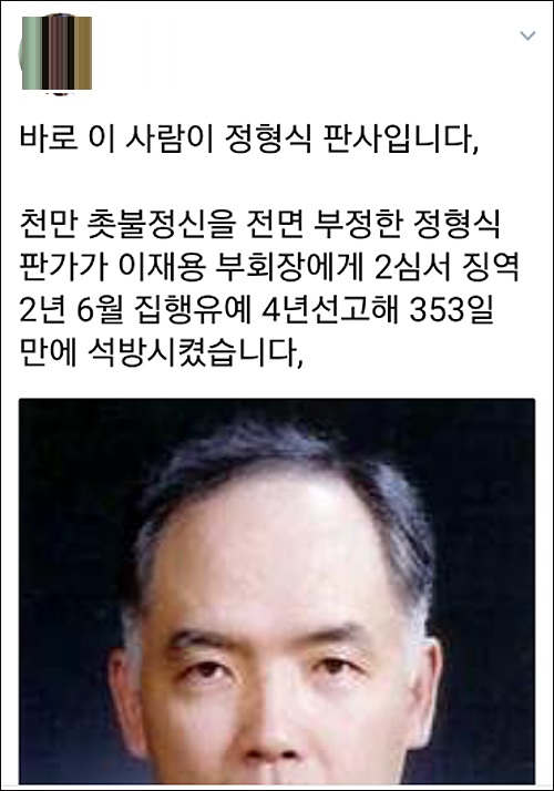 박근혜 전 대통령과 최순실씨에게 거액의 뇌물 공여와 재산국외도피 등의 혐의를 받고 있는 이재용(50) 삼성전자 부회장에게 정형식 부장판사가 5일 집행유예를 선고해 비난이 쇄도하고 있다.