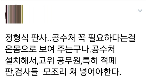 홍성태 상지대 교수는 “판사 법비(법률을 절대시해 다른 사람에게 손해를 끼치는 관리나 법률가) 문제를 개혁하지 못하면 조만간 또 다시 이명박근혜 비리 세력의 세상이 될 것”이라며 “판사 법비들이 비리 국가를 위해 최선을 다해 애쓰고 있다”고 개탄했다.