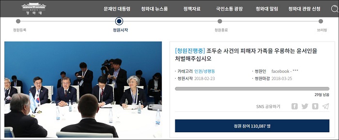 청원자는 “‘윤서인’이라는 만화가가 조두순 사건을 인용하여 정치상황을 풍자하는 만화를 그렸는데 아무리 정치 성향이 다르고, 생각이 달라고 이것은 도를 넘은 행동이라고 생각한다”며 청원 이유를 설명했다.