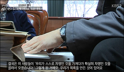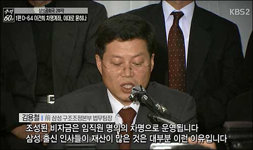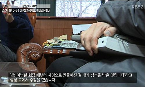 KBS 시사프로그램 ‘추적60분’은 7일 ‘삼성공화국 2부작’ 중 1편 ‘D-64 이건희 차명계좌, 이대로 묻히나’를 방송했다.