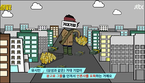 이에 유 작가는 “이렇게 되면 회사 전체적인 차원에서 삼성을 비판하는 기사를 검열하게 돼 있다”며 “정치학 용어로 ‘캡처(포획)이론’이라고 한다”고 소개했다.