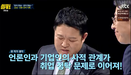 개별적 관계와 관련 유 작가는 “지금은 취업이 힘든 시대이다, 기업은 돈과 일자리를 갖고 있다”며 “그래서 취업청탁이 그렇게 많은 것”이라고 지적했다.