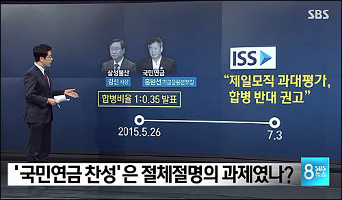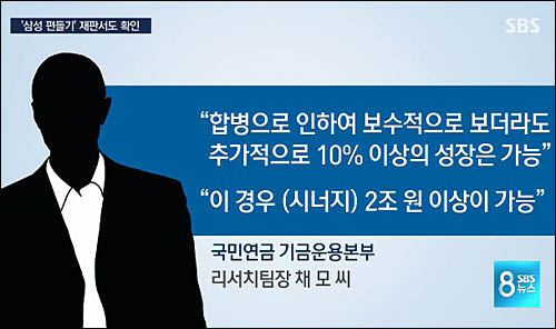 국민연금 리서치팀은 제일모직과 삼성물산이 합병되면 2조1000억 원이나 되는 합병 시너지가 생긴다고 근거를 냈지만 아무런 근거 없이 짜 맞춘 계산으로 드러났다고 SBS는 보도했다.