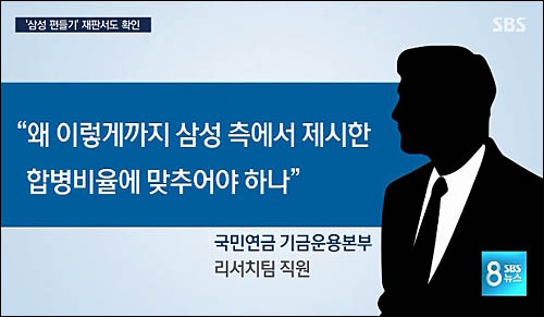 또 국민연금 리서치팀은 삼성의 합병 비율 1대 0.35 발표 뒤 자체적으로 합병 비율을 산정했는데 서로 다른 잣대를 사용했다.