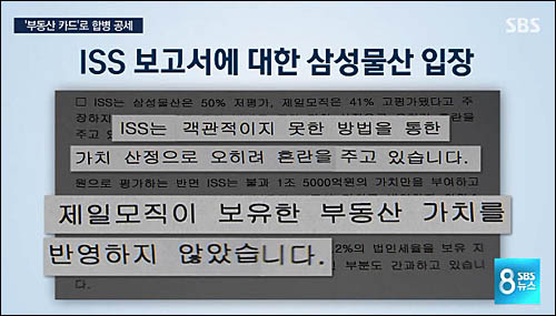 당시 세계 1, 2위 의결권 자문사인 ‘ISS’와 ‘글라스루이스’가 합병을 반대하자 삼성물산이 보도자료를 냈다. 삼성물산은 “ISS가 제일모직이 보유한 부동산 가치를 반영하지 않아 합병 비율을 제대로 평가하지 못한 것”라고는 했다.