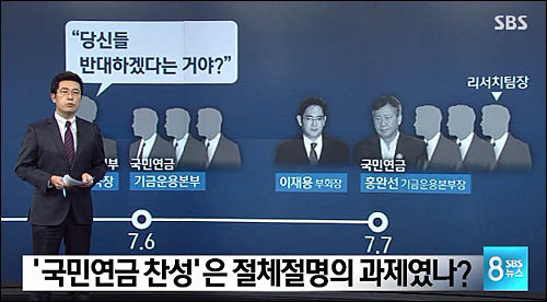 SBS가 전날 삼성 용인 땅값에 대한 7꼭지 보도에 이어 20일도 국민연금의 수상한 제일모직 부동산 가치 평가에 대해 8꼭지로 보도했다.