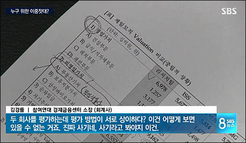 이에 대해 김경률 참여연대 경제금융센터 소장은 “(국민연금이) 자신들이 불리한, 자신들이 지분을 덜 갖고 있는 회사에게 유리하게 평가하고 있다”며 “애초부터 제3자를 위해 복무한 흔적으로 보인다”고 지적했다.