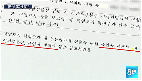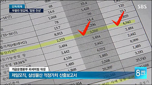 이같은 보고서는 제일모직과 삼성물산 합병 찬성 결정의 근거가 됐다. 박주민 더불어민주당 의원은 “승계 작업을 돕기 위해서 주먹구구식, 아예 부정확한 평가를 했다”고 비판했다.