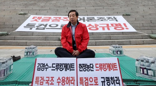 김성태, 드루킹 특검 관철 무기한 노숙단식 돌입. 크~