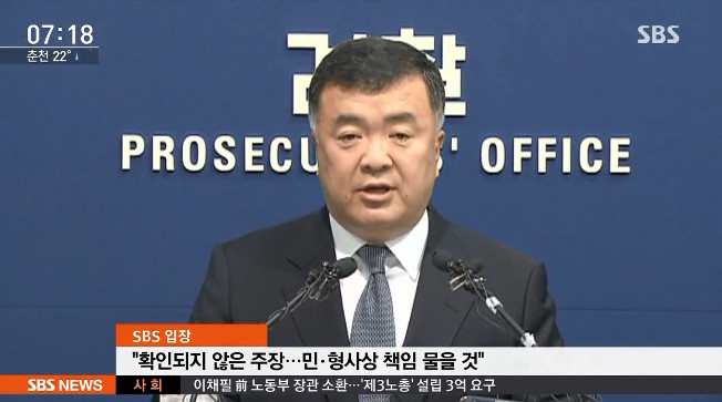 그러면서 “확인되지 않은 주장으로 SBS의 명예를 훼손한 이 전 중수부장에 대해 민·형사적 책임을 물을 계획”이라고 밝혔다.